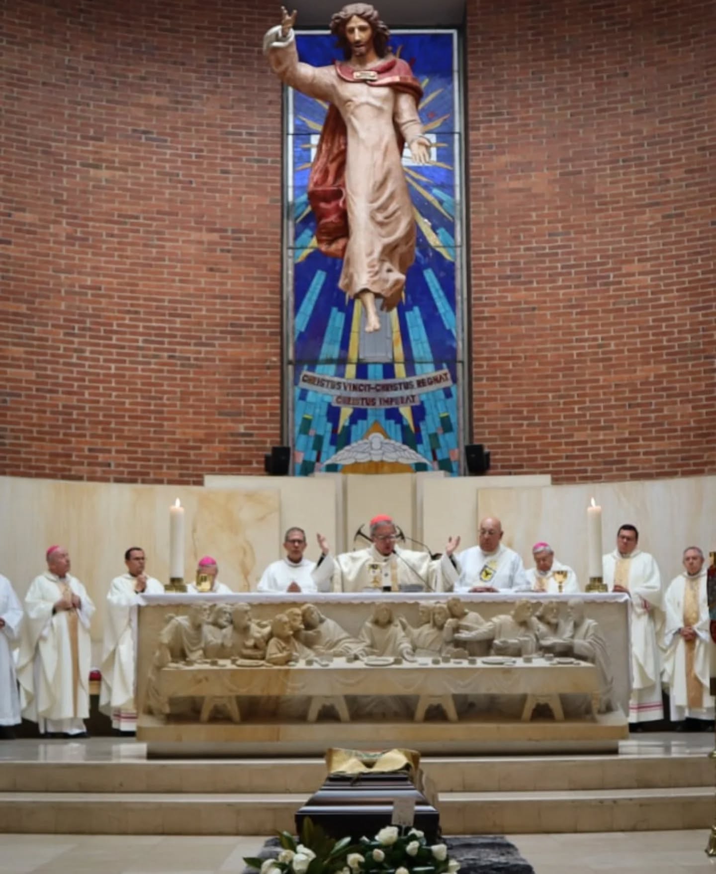 La Eucaristía exequial, celebrada el 5 de octubre en el templo Cristo Rey, fue presidida por el cardenal Luis José Rueda Aparicio, arzobispo de Bogotá, quien durante su homilía destacó la vida entregada del padre Hernán como un testimonio luminoso de fe y servicio.