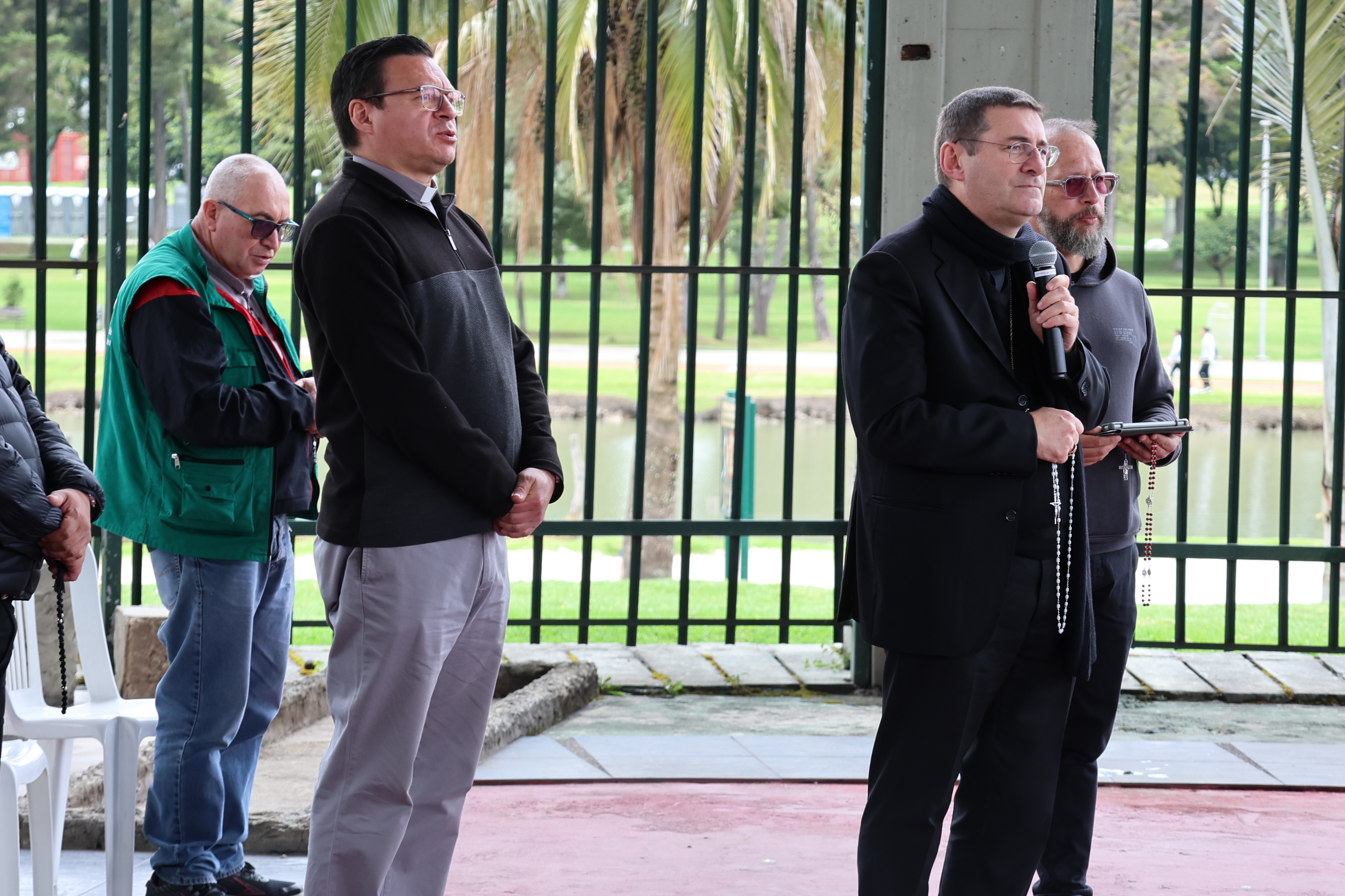 Uno de los momentos más significativos de la jornada fue el rezo del Santo Rosario, en el cual participó de manera especial el nuncio apostólico en Colombia, monseñor Paolo Rudelli, quien acompañó a los sacerdotes en oración por la Iglesia, la ciudad y las comunidades que sirven día a día con entrega y alegría.