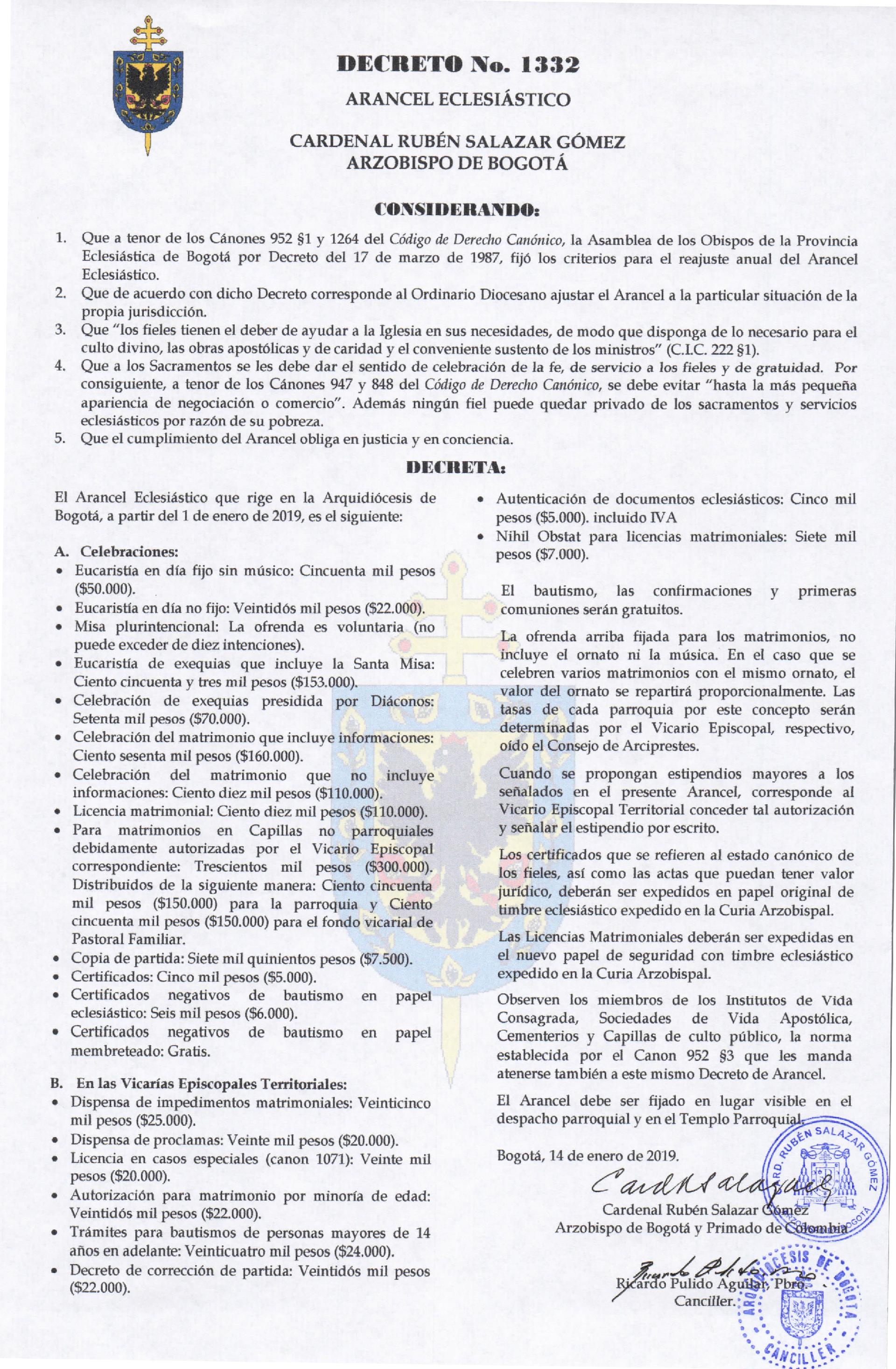 Nombramientos en la Arquidiócesis de Bogotá