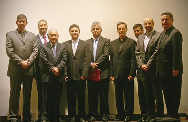De derecha a izquierda: Padre Julio Solórzano, delegado del señor arzobispo; Mauricio Ferro, presidente Position Comunicaciones Estratégicas; Germán Serrano de Thomas Greg & Sons; el señor cardenal Rubén Salazar Gómez, arzobispo de Bogotá, Alejandro Estévez Ochoa, presidente de Plantar de Colombia; Fabián Restrepo, presidente de Productos Alimenticios Doria; Jaime Garzón de la Price Waterhouse Cooper; Carlos Enrique Cavelier, presidente de Alquería y el padre Daniel Saldarriaga, director Ejecutivo del Banco de Alimentos de Bogotá.