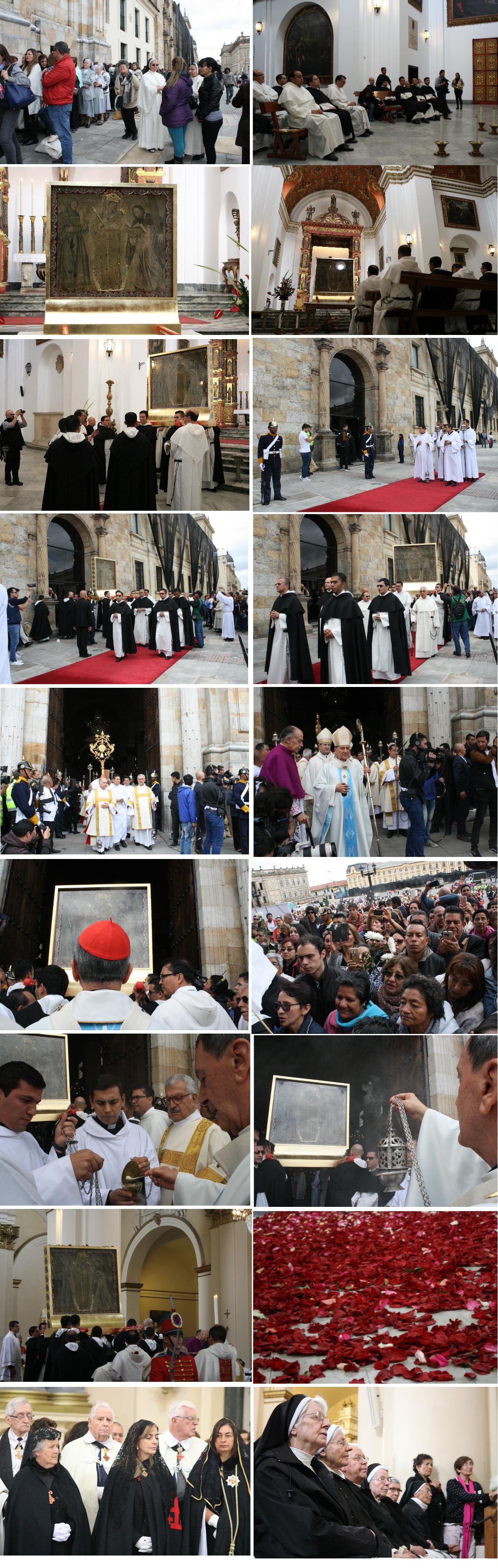 Al fin, hacia las diez de la mañana y a hombros de ocho frailes dominicos salió de la Capilla del Sagrario, la gente muy emocionada batía banderas del Vaticano y marianas, no dejaron de sonar aplausos y vivas.