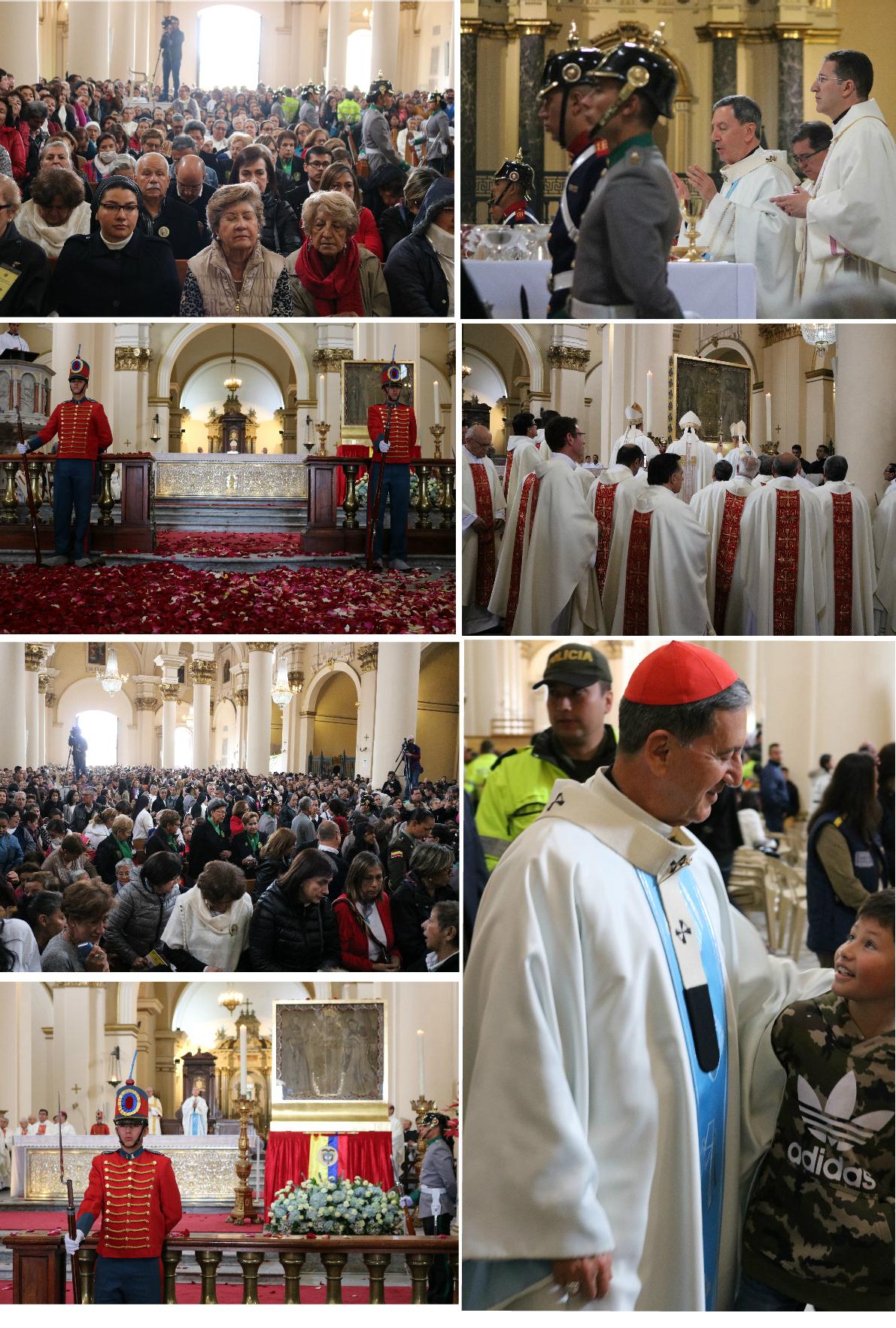 Desde muy temprano las calles aledañas a la Catedral se vieron llenas de fieles, familias devotas y peregrinos que querían participar de la ceremonia de entronización de la imagen de la Reina de Colombia.