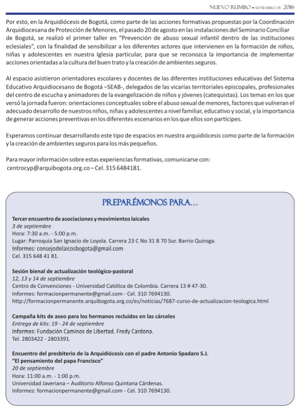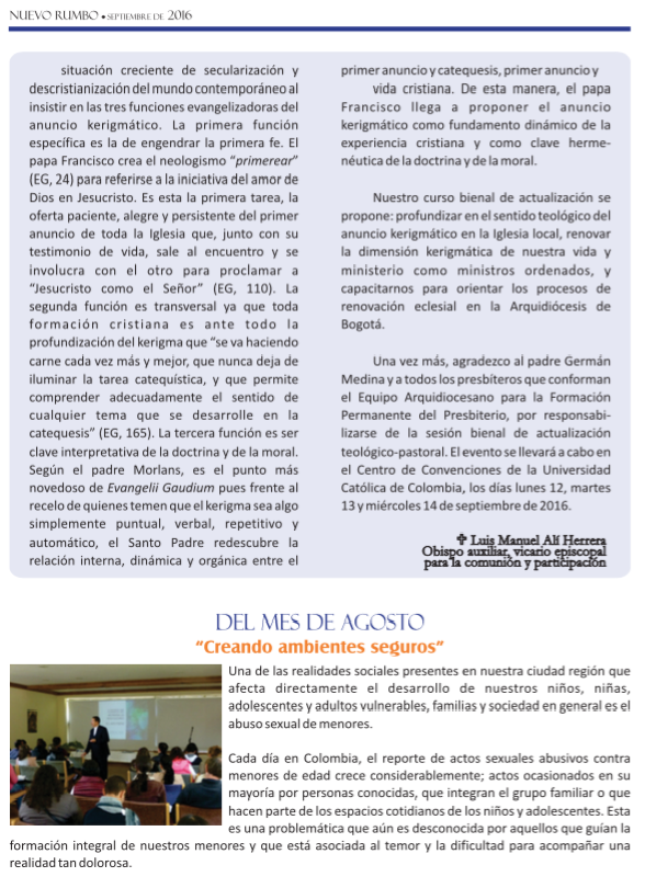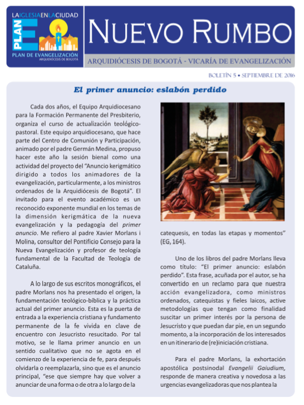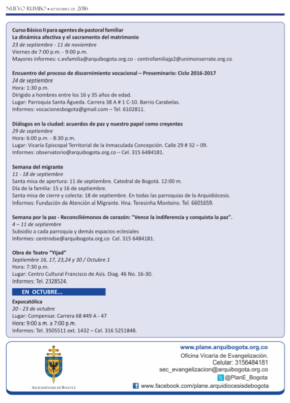 Oficina Vicaría de Evangelización. Llámanos 350 55 11. Ext: 1105 o escríbenos: sec_evangelizacion@arquibogota.org.co