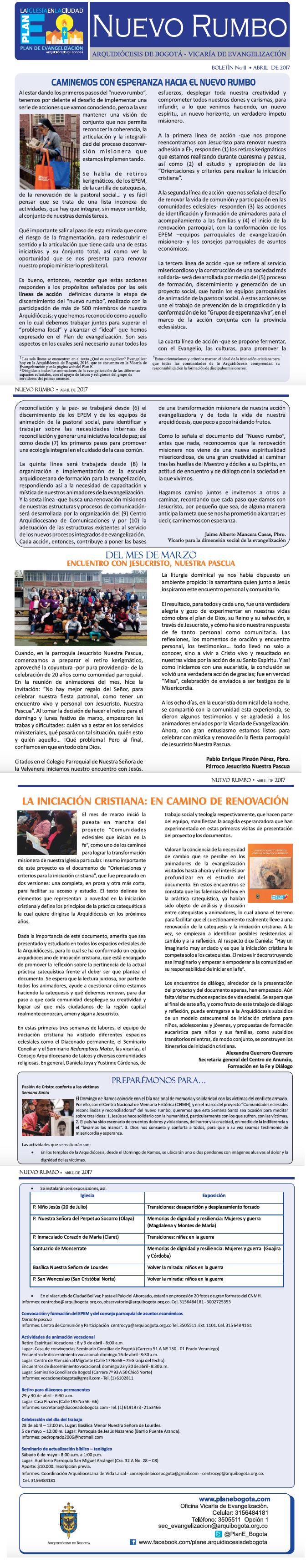 Oficina Vicaría de Evangelización. Llámanos 350 55 11. Ext: 1105 o escríbenos: sec_evangelizacion@arquibogota.org.co
