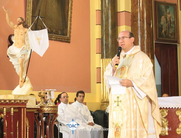 Monseñor Jaime Mancera, al iniciar la homilía se refirió al tiempo de Pascua que estamos viviendo donde Jesús está vivo y presente, “a través de las lecturas del Nuevo Testamento hacemos memoria de cómo Jesús Resucitado va impregnando la vida de las personas con un nuevo significado” y transforma su vida en la cotidianidad de la ciudad, del campo y en su vida como trabajadores.