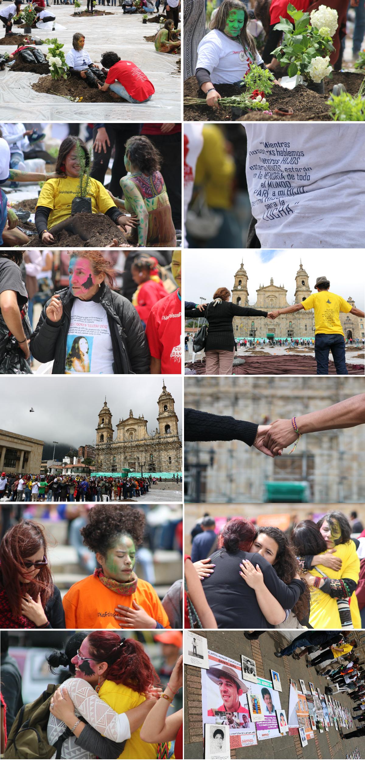 Desde las seis de la mañana hasta las dos de la tarde del día jueves 27 de julio, en la plaza de Bolívar de Bogotá, más de 25 personas sembraron sus cuerpos exigiendo justicia para las personas desaparecidas y ejecutadas. El evento fue realizado en conmemoración de los nueve años de la desaparición y ejecución extrajudicial de Fair Leonardo Porras Bernal residente del municipio de Soacha (Cundinamarca), quien fue presentado como "falso positivo” en Ocaña (Norte de Santander).