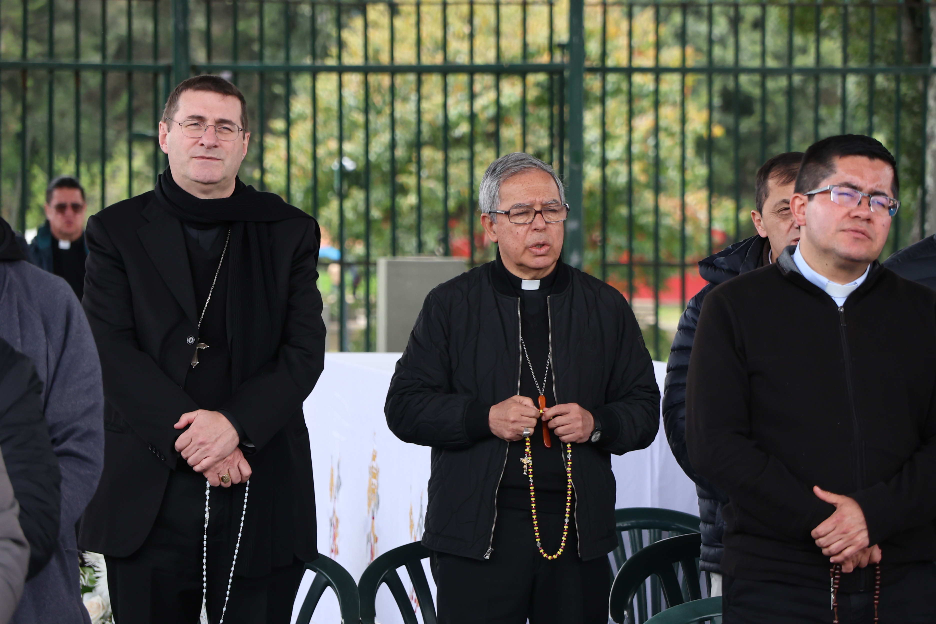 Uno de los momentos más significativos de la jornada fue el rezo del Santo Rosario, en el cual participó de manera especial el nuncio apostólico en Colombia, monseñor Paolo Rudelli, quien acompañó a los sacerdotes en oración por la Iglesia, la ciudad y las comunidades que sirven día a día con entrega y alegría.