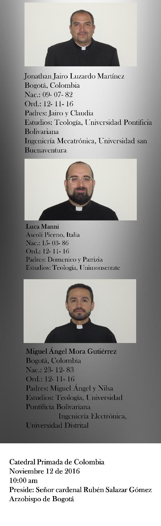 El sábado 12 de noviembre, en la catedral bogotana, recibirán la ordenación presbiteral quince diáconos