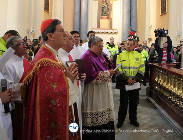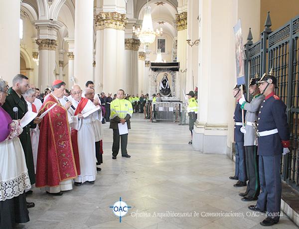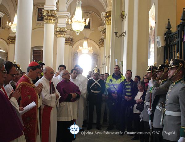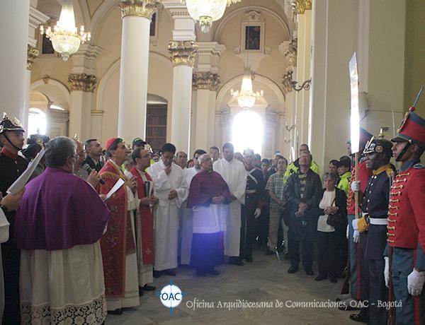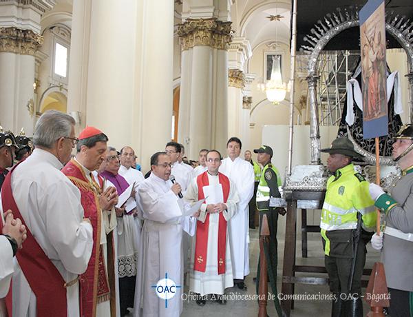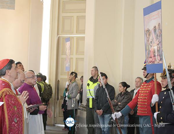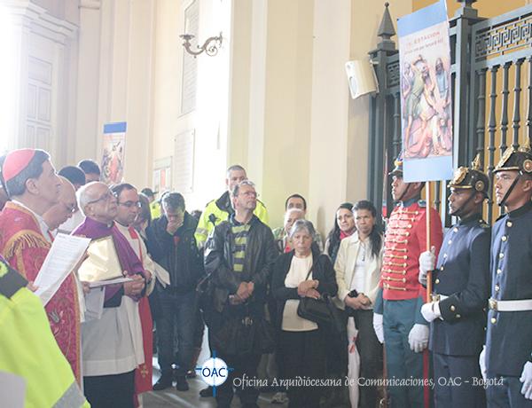 Con una gran participación de la comunidad entre fieles y peregrinos se realizó este sentido y significativo Vía Crucis adaptado a la “Pasión” que se vive en nuestro País, meditado y recorrido al interior del Templo, con las reflexiones escritas por monseñor Jorge Alberto Ayala López, párroco de la Catedral Primada de Colombia; el cual fue introducido, desarrollado en algunos apartes y concluído con algunos mensajes del papa Francisco en su carta Evangelii Gaudium.