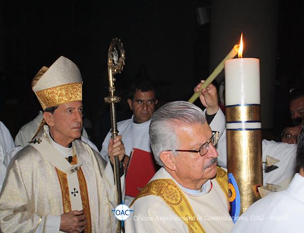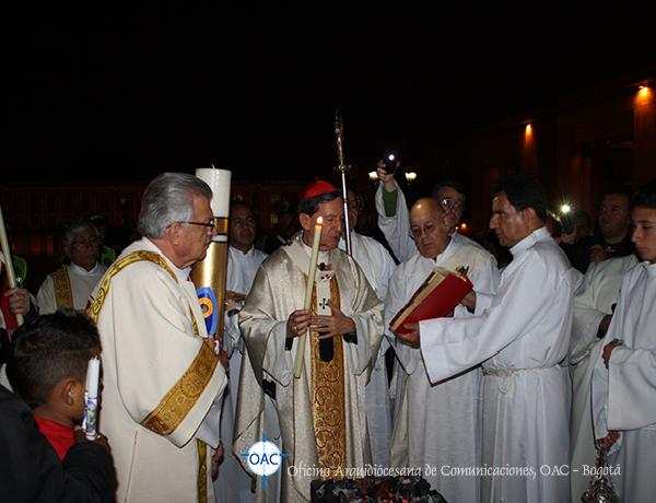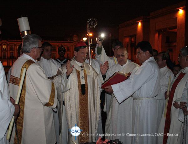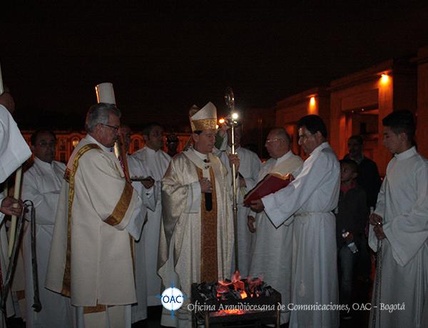 El sábado 4 de abril a las siete de la noche, antes de entrar a la Catedral Primada de Colombia, el cardenal Rubén Salazar Gómez, arzobispo de Bogotá preparó el cirio pascual en el que incidió sobre una cruz un alfa, un omega (signos del principio y del fin del tiempo).