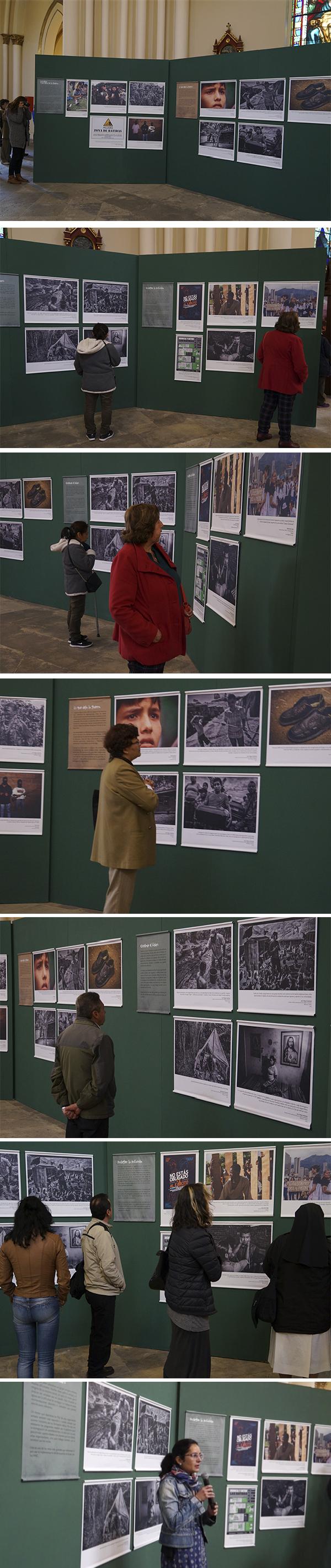 A la entrada, por la nave izquierda, se encuentra una gran pared verde con imágenes conmovedoras de los niños víctimas del conflicto. Niños tranquilos, asustados, trabajadores, en familia, solos, todos inocentes… todos víctimas…