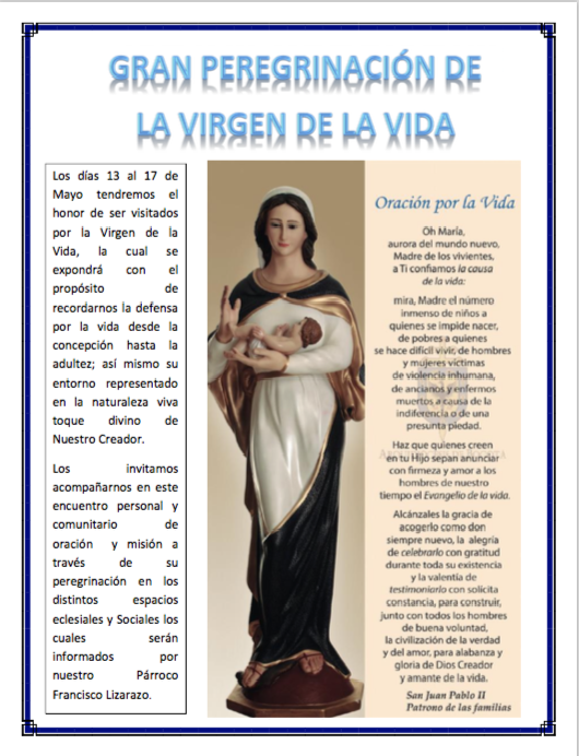 Peregrinación Virgen de la Vida – Parroquia de la Epifanía Mayo 13 al 17 de 2015