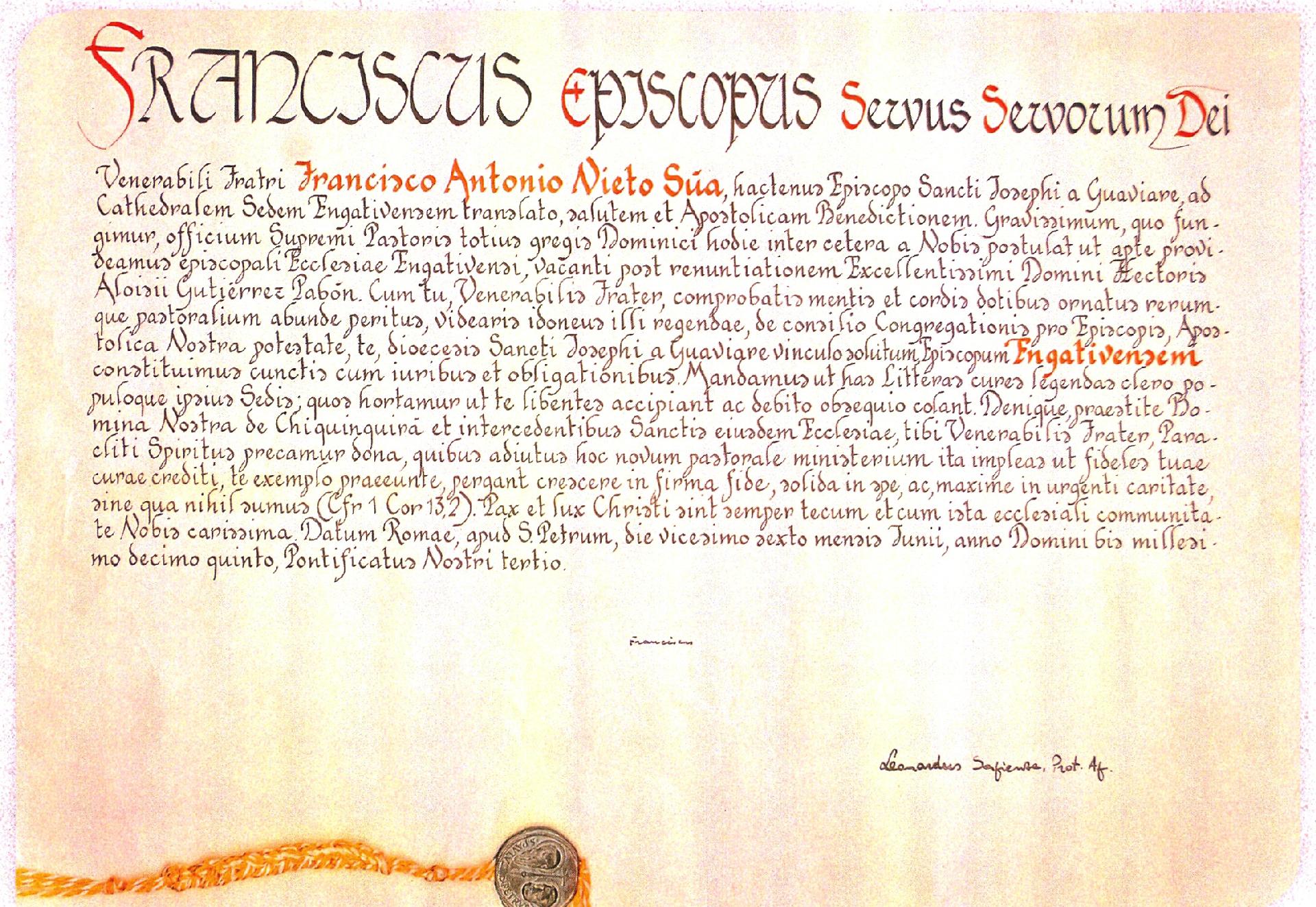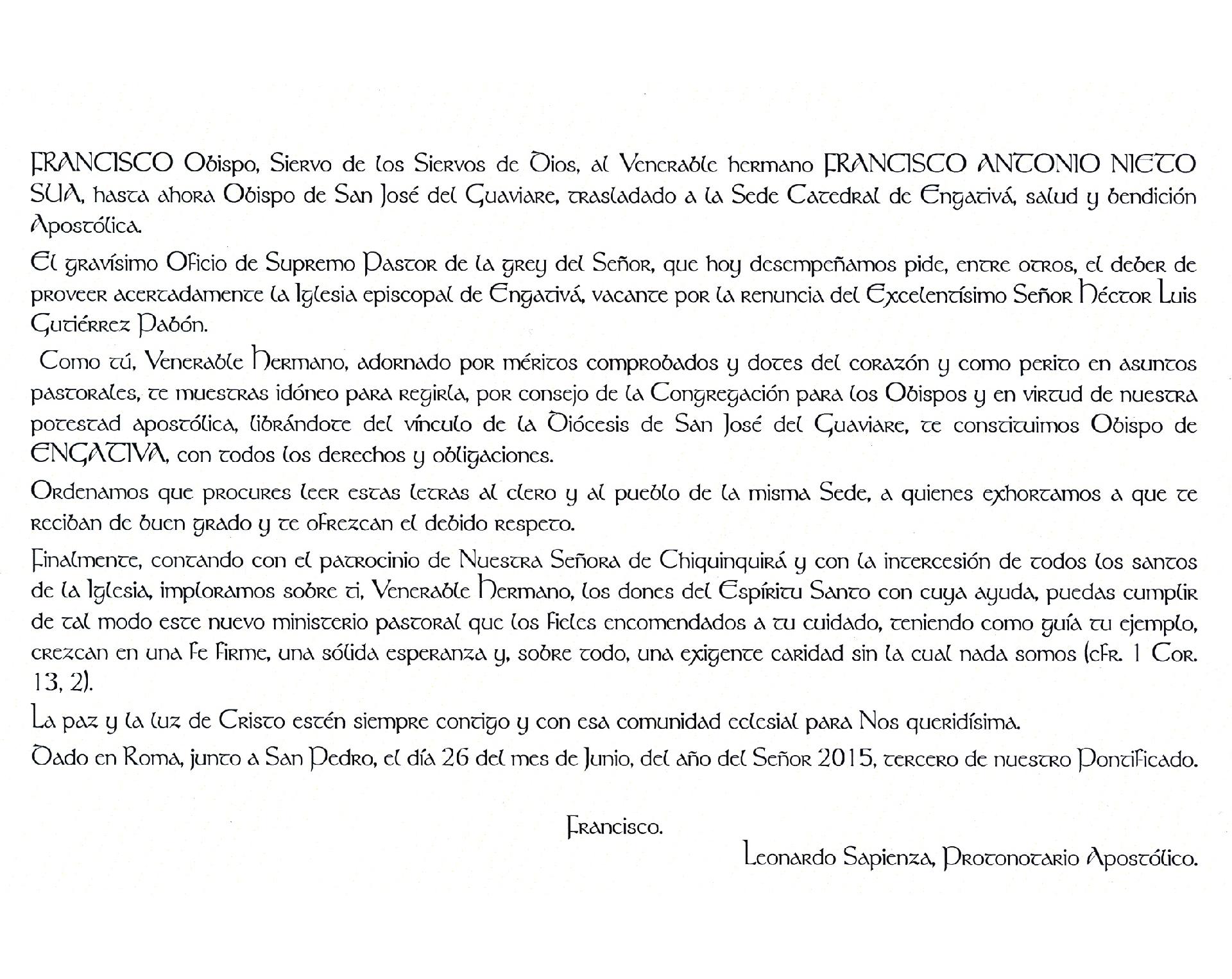El Santo Padre Francisco nombró al ilustrísimo monseñor Francisco Antonio Nieto Súa como obispo de la diócesis de Engativá el pasado 26 de junio. La emotiva ceremonia de posesión tuvo lugar el pasado día lunes 27 de julio.