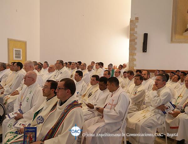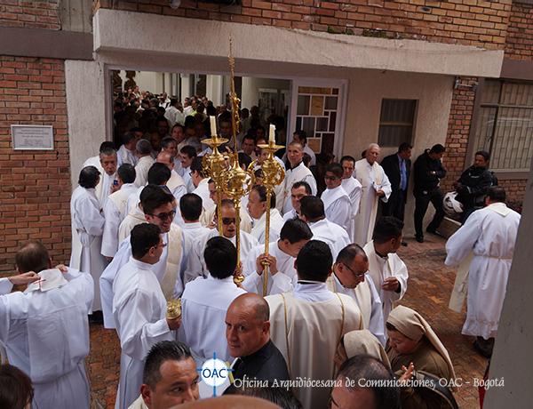 La ceremonia del juramento fue corta: Monseñor, de rodillas ante el Sagrario, pronunció el Credo y el juramento como nuevo obispo, en presencia del señor Nuncio. Entonces empezó la procesión de entrada, imponente: más de 400 concelebrantes entre obispos, presbíteros y diáconos de todas las diócesis de la Bogotá metropolitana.