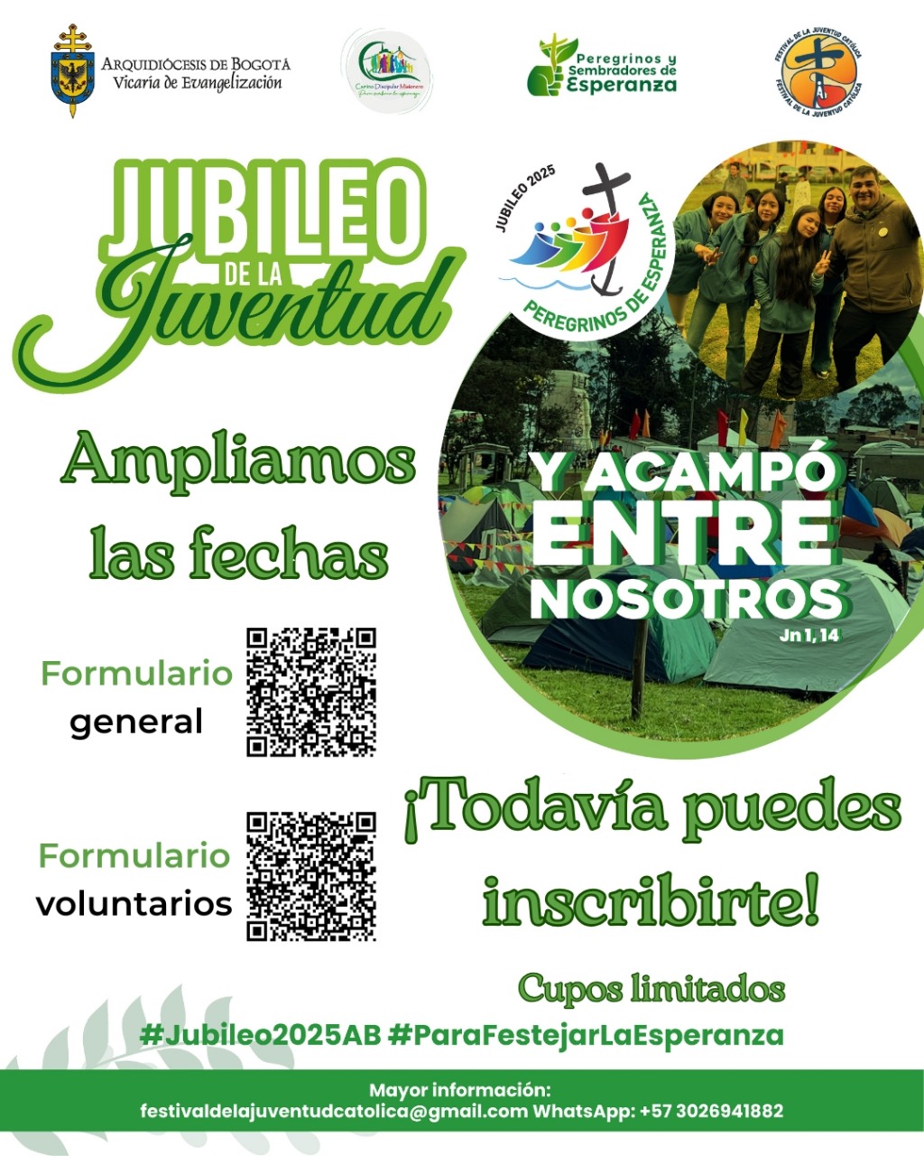 Para los jóvenes que aún no se han inscrito al jubileo de la juventud 2025 que se realizará los días 23 y 24 de agosto aún lo puedes realizar. ¡Esta es tu oportunidad de hacerlo!