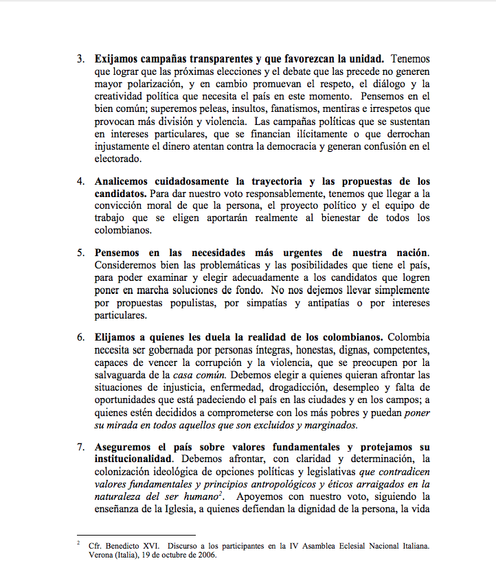 Los obispos católicos de Colombia proponen siete criterios y fundamentos al pueblo colombiano para ejercer un voto responsable, libre y consciente que le dé…