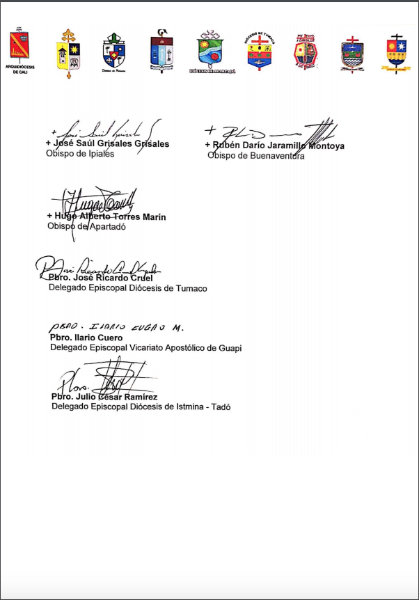 Ante este panorama, los obispos se comprometen a fortalecer la oración, tender puentes que faciliten el diálogo social y pactos de convivencia, insistir en la implementación integral del Acuerdo de Paz y continuar promoviendo la solución negociada al conflicto armado, seguir impulsando una Agenda Regional Eclesial de Paz y, por último, continuar evidenciando ante la opinión pública las situaciones que ponen en riesgo la integridad de las comunidades más vulnerables.