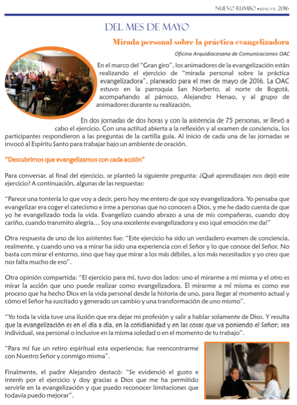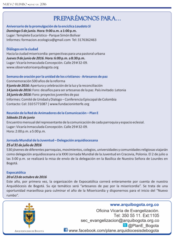 Oficina Vicaría de Evangelización. Llámanos 350 55 11. Ext: 1105 o escríbenos: sec_evangelizacion@arquibogota.org.co