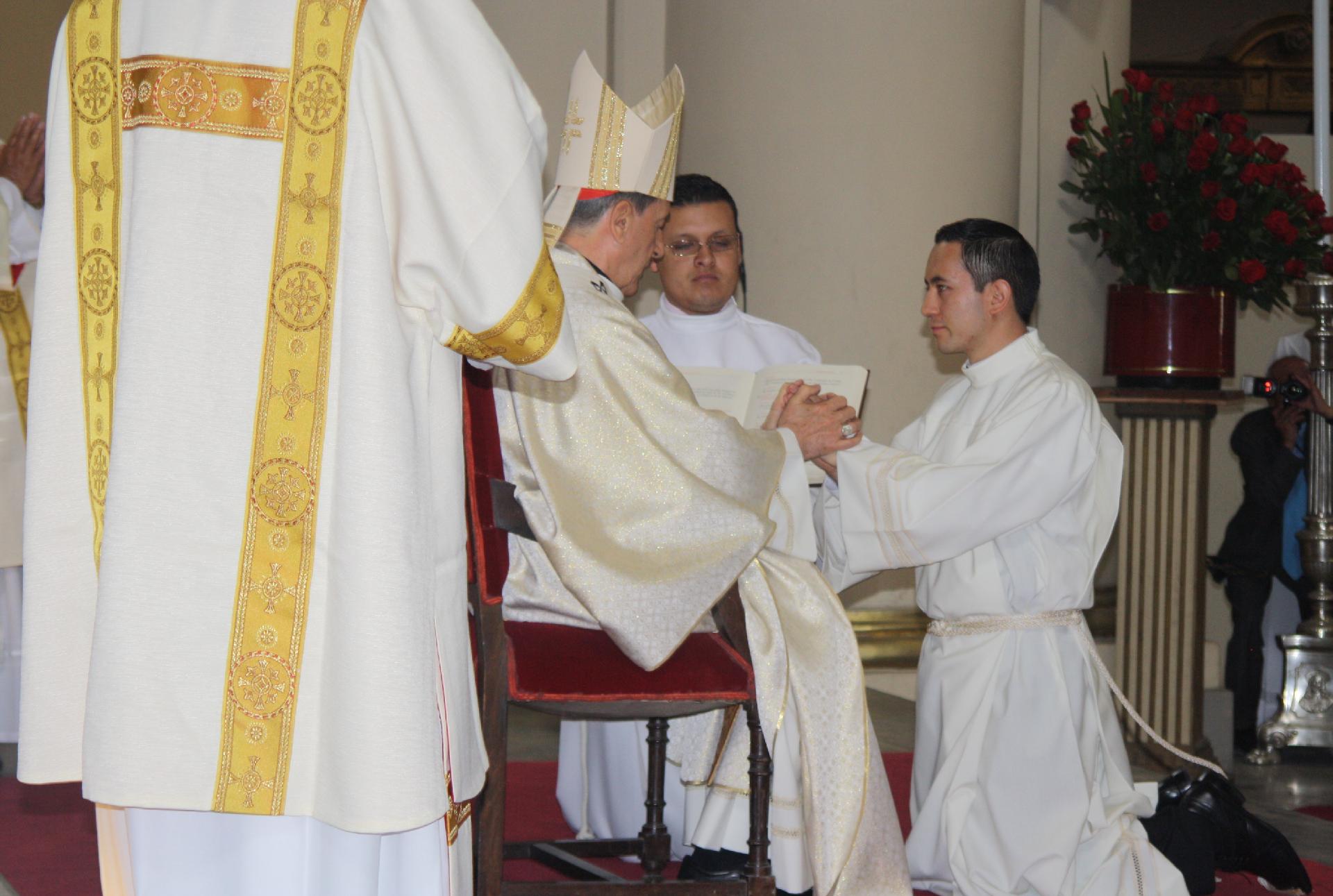Uno a uno se acercaron ante el Señor Cardenal arrodillándose ante él y poniendo sus manos juntas, prometiendo respeto y obediencia al Obispo diocesano y a su superior legítimo.