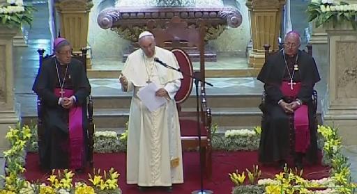 En su discurso el Pontífice expresó su alegría por “estar en este país de singular belleza”, que sobre todo “es una tierra bendecida en sus gentes, con su variada realidad cultural y étnica, que constituye una gran riqueza y un llamado permanente al respeto mutuo y al diálogo”.
