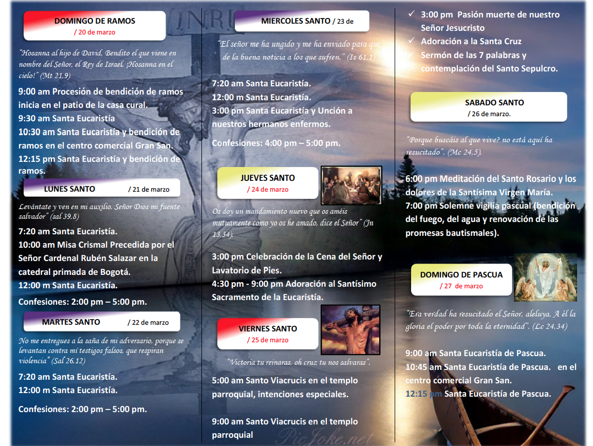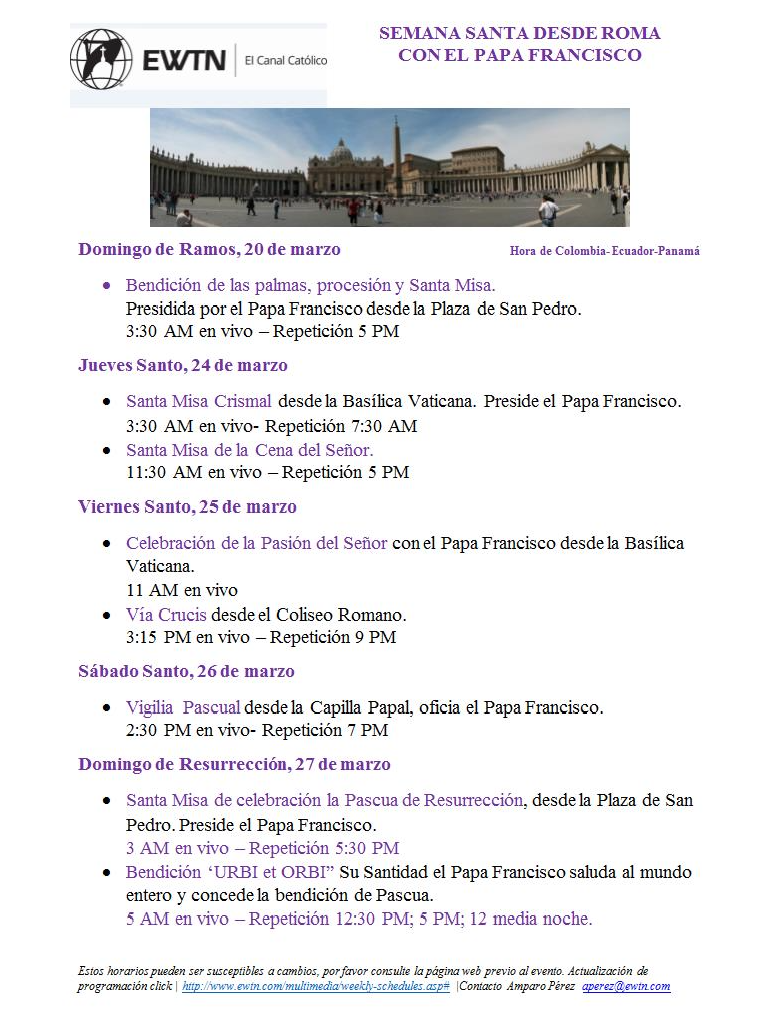 A continuación compartimos algunas programaciones para la Semana Santa.